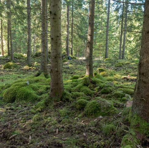 Nu har ni fått tagit del av alla som levt och rört sig på Svedjan, nu fortsätter turen mot Hökås. Efter lite snirklande på grusvägen kom jag fram till platsen där jag hade markerat ut torpet Hökås. Jag trodde även det här torpet låg innanför stängslet så jag grämde lite för mig själv en stund. Jag hade dock en andra position på kartan lite längre in i skogen bakom mig med titeln ”Hökås?”. Men in i den täta ovårdade skogen gick jag bara inte in i. Jag la Hökås bakom mig och gick ner för en härligt skön nerförsbacke som omväxling och mina ögon drogs till en stor och fin övermossad odlingsröse. Stod där en stund och beundrade hur vacker den var när solen låg på de mossiga stenarna i högen. Tog upp min mobil för att checka av vad som fanns här på Häradsekonomiska-kartan. Och visst fanns det en lycka här en liten bit från Hökås. Endast ett stort röse längst ner i den sydvästra kanten av åkern, resten var fin gammal uppodlad mark med stora granar på. Mina tankar gick direkt till Svedjan som jag hittade på skifte-kartan och att det innan kunde legat något äldre här. Efter en tio minuter upp och ner i backen konstaterade jag att så inte var fallet, inga tydliga tecken på det i alla fall.